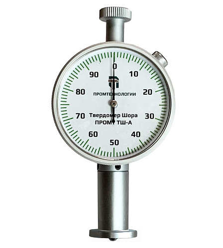 Твердомер по Шору (дюрометр) ПРОМТ ТШ-А (тип АО) используется для контроля твердости при вдавливании объектов с низкой твердостью (мягкой резины, пенополистирола, иных мягких, микропористых и аналогичных материалов) по методу Шора в соответствии с ГОСТ Р ИСО 7619-1-2009 и ISO 7619-1. В зарубежных странах аналогичный прибор также может иметь обозначение «тип С» (встречается еще ASKER-C или ASK-C) в соответствии с японскими стандартами JIS K 7312 и JIS S 6050, тогда как указанные выше российский ГОСТ и международный ISO под типом С предусматривают дюрометр с иными характеристиками. В основу метода положено определение глубины вдавливания индентора определенной формы под воздействием заданной силы в течение необходимого времени. За результат измерения принимается значение твердости в единицах Шора АО (HAО) в диапазоне от 0 до 100 отображаемое на индикаторе часового типа. Температура воздуха и материала является важным параметром при проведении испытания и определяется ГОСТ либо нормативными документами на объект испытания. Относительная влажность также может влиять на твердость некоторых материалов.